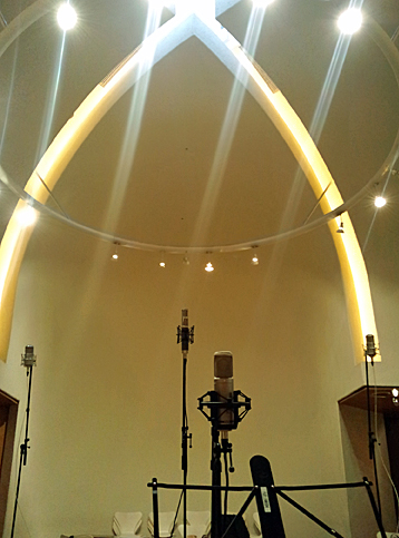 続いて11月16日は伊東さんの録音でもチェンバロを弾いた、ピアニスト守矢花梨さんのソロ・リサイタルをレコーディング。 この日の会場はドイツ文化センター内にある OAG ホール、吊りマイクがなかったので、Lauten Audio Clarion をペアで客席前方に設置してのワンポイント録音でした。 |